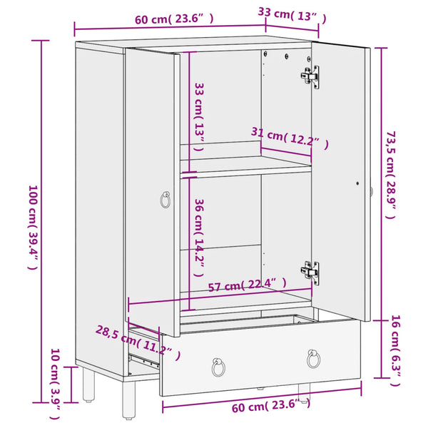 - Mitat: 60 x 33 x 100 cm (L x S x K)