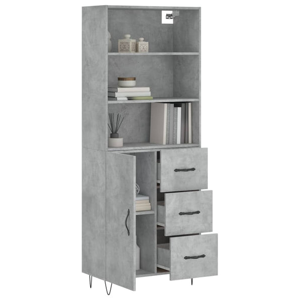 Kaappi betoninharmaa 69,5x34x180 cm tekninen puu