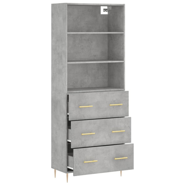 Kaappi betoninharmaa 69,5x34x180 cm tekninen puu