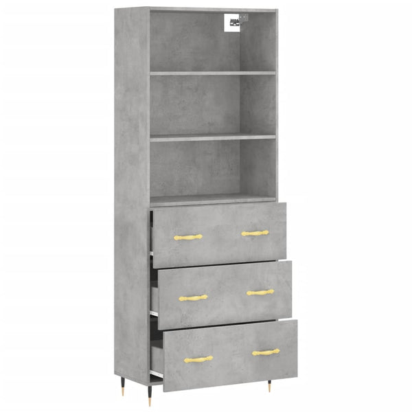 Kaappi betoninharmaa 69,5x34x180 cm tekninen puu