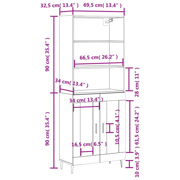 • Kaapin yläosan mitat: 69,5 x 32,5 x 90 cm (L x S x K)