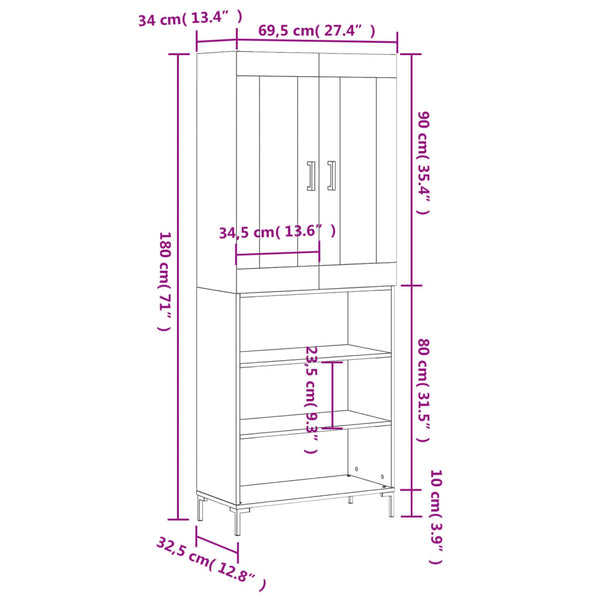 • Mitat: 69,5 x 34 x 180 cm (L x S x K)