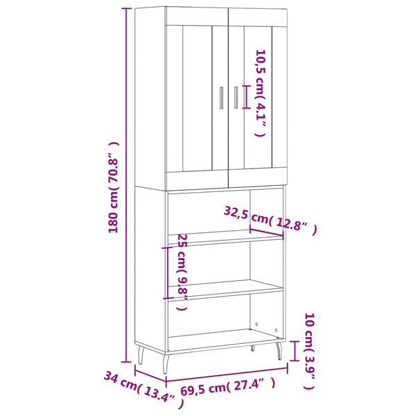 • Mitat: 69,5 x 34 x 180 cm (L x S x K)
