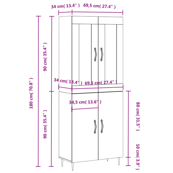 - Mitat: 69,5 x 34 x 180 cm (L x S x K)