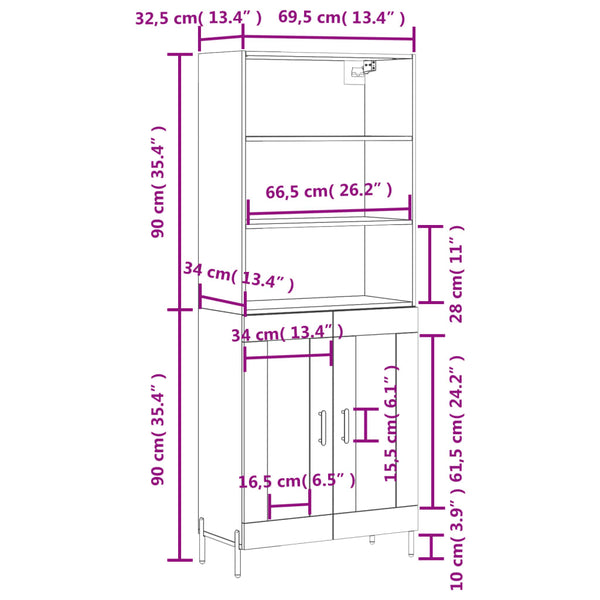• Kaapin yläosan mitat: 69,5 x 32,5 x 90 cm (L x S x K)