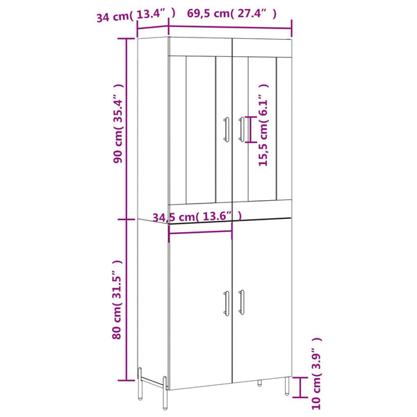 - Kaapin yläosan mitat: 69,5 x 34 x 90 cm (L x S x K)