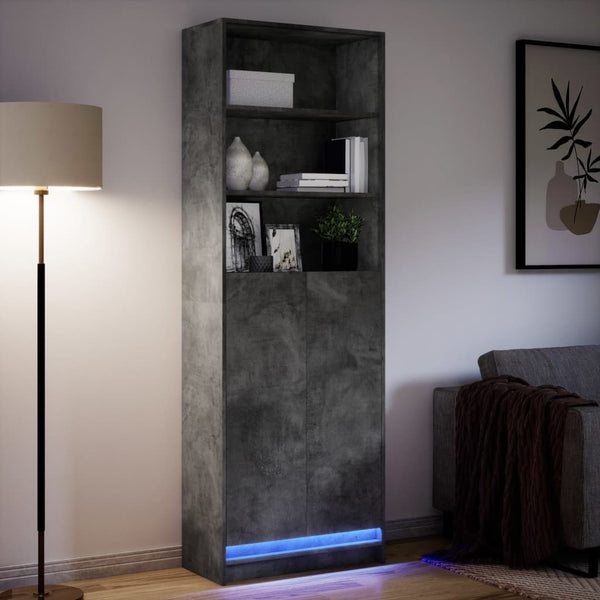 Betoninharmaa kaappi led-valoilla 69x32,5x200cm puinen