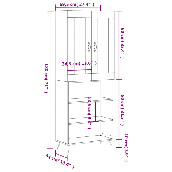 - Mitat: 69,5 x 34 x 180 cm (L x S x K)