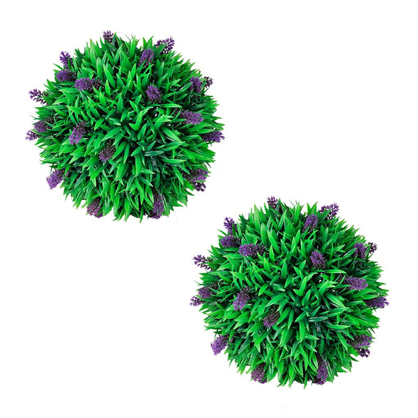 Koska se on valmistettu laadukkaasta muovista, tämä pallosarja on säänkestävä ja pitkäikäinen. Siinä on vihreitä lehtiä ja purppuran värisiä laventelin kukkia, tämä tekokasvi näyttää aidolta ja kauniilta.