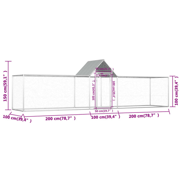 Galvanoitu kanahäkki 5x1x1,5 m teräs