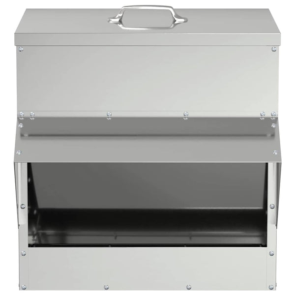 Tämä metallinen kanansyöttölaite on perusvaruste kaikille kanan kasvattajille. Sen moderni ja tyylikkäästi suunniteltu muotoilu yhdistää toiminnallisuuden ja helppouden, joten se sopii niin sisä- kuin ulkokäyttöön. Rakennettu vaativille, sen tilava kapasiteetti takaa pitkäikäisyyden ja vähän huoltoa ruokintarutiineissa. Muotoilu varmistaa, että ruoka on saatavilla, ja katos suojaa sitä säältä.