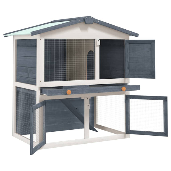 Harmaa kanin ulkohäkki 3 ovea, puu