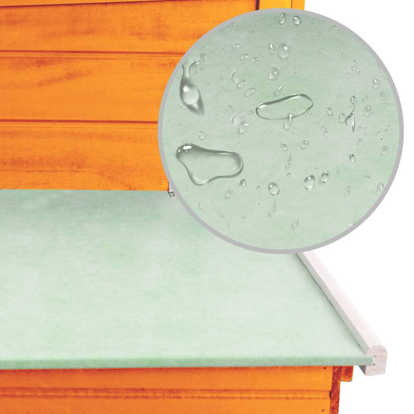 Häkki on valmistettu korkealaatuisesta mäntypuusta, joten se on pitkäikäinen. Vihreä vedenpitävä katto pitää sateen poissa luoden lämpimän ja mukavan lepopaikan