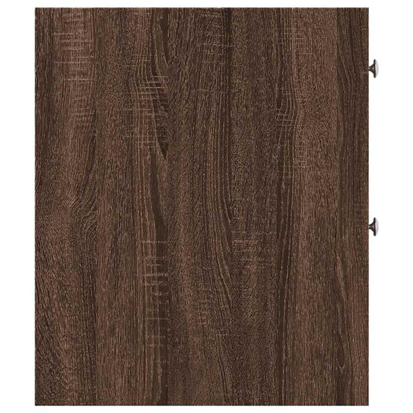 Ruskea kapea kylpyhuonekaappi pyörillä, tammi puinen