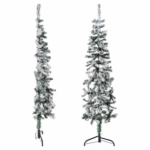 Lumihuurteella kapea puolikas tekojoulukuusi 150cm