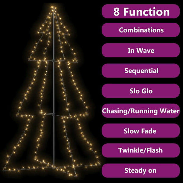 Valot koostuvat 240 LED-valosta, jotka ovat energiatehokkaita ja loistavat kirkkaana. Niissä on kahdeksan erilaista valoefektiä: kaikkien efektien yhdistelmä, hidas hehku, välke/vilkkuva, aalto, juokseva vesi, peräkkäinen, tasaisesti päällä ja hidas himmennys. Se valaisee kauniisti ja luo maagista juhlatunnelmaa. Se on varsinainen katseenvangitsija erityisesti iltaisin, jolloin se toimii myös mukavana taustavalona. Itsestään seisova kartionmallinen joulukuusi voidaan helposti ja turvallisesti kiinnittää maahan mukana tulevilla kiinnitystarvikkeilla.