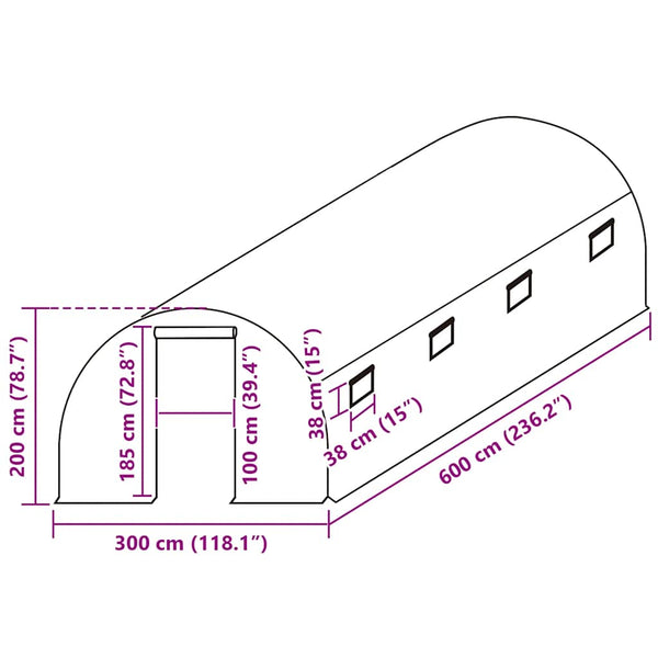 Vihreä kasvihuoneen vaihtokate 300x600x200cm (9 m²
