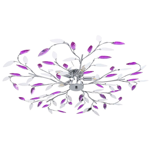 Purp kattovalaisin akryylikristalleilla lehdet 5xE14-polttimoa