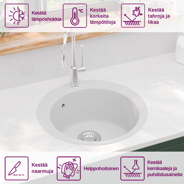 Valkoinen keittiön pesuallas graniitti pyöreä