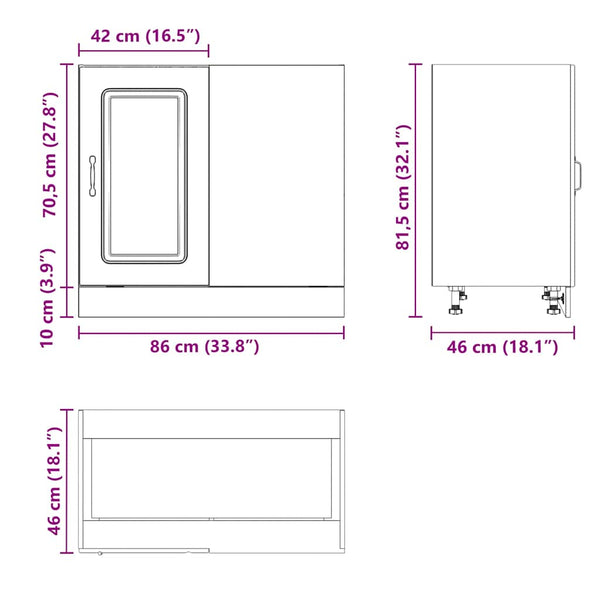 - Säädettävät jalat: Tämän kaapin jalkojen korkeutta voidaan säätää keittiösi asettelun mukaan.