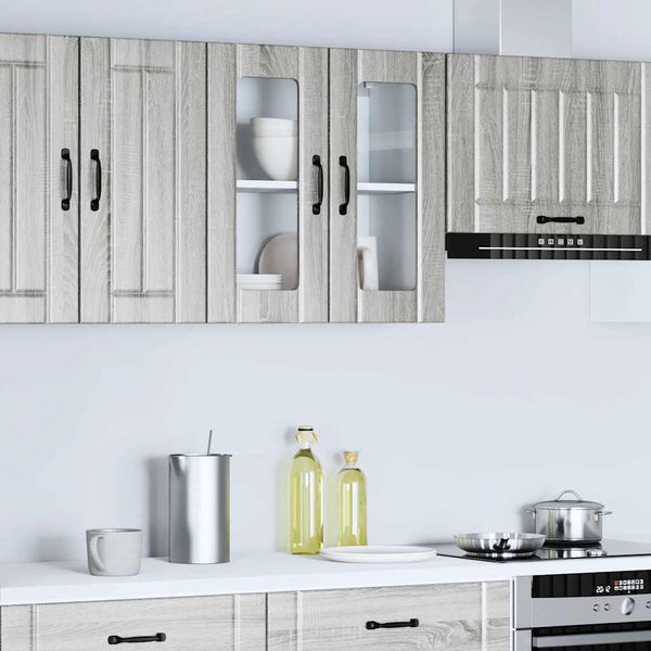 Harmaa keittiön seinäkaappi lasiovella lucca sonoma