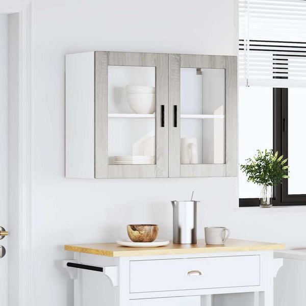 Harmaa keittiön seinäkaappi lasiovella porto sonoma