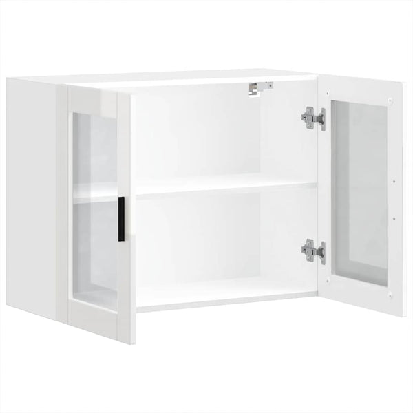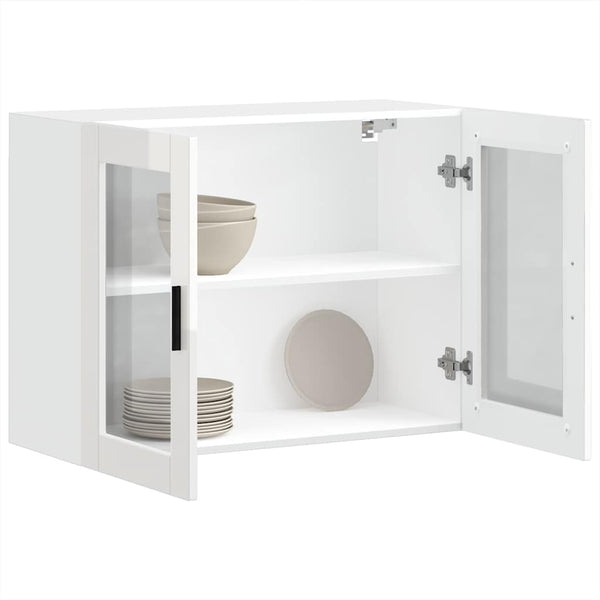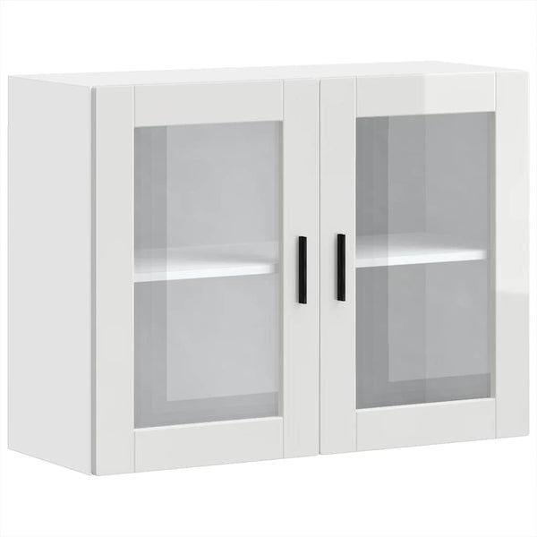 Kiiltävä valkoinen keittiön seinäkaappi lasiovella porto