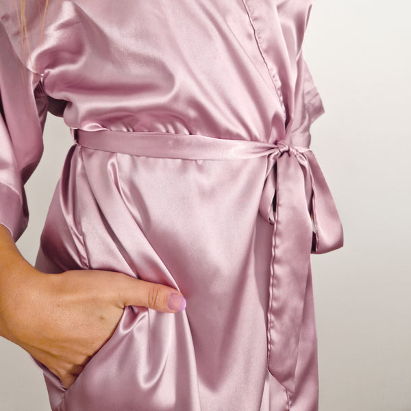Kimono satiini Old Pink 87 x 118 cm + 40 cm hiha - Kylpytakki.