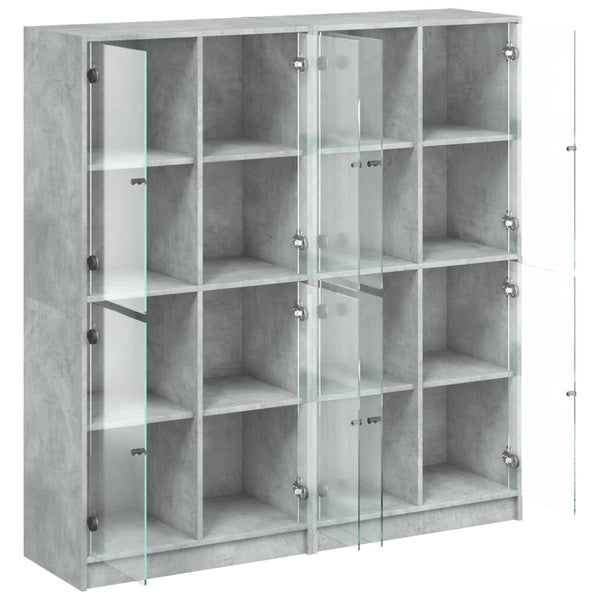 - Käytännöllinen muotoilu: Pidä tärkeät tavarasi pölyttöminä piilottamalla ne lasiovien taakse. Lisäksi mustat kahvat helpottavat kirjahyllyn lokeroiden avaamista.