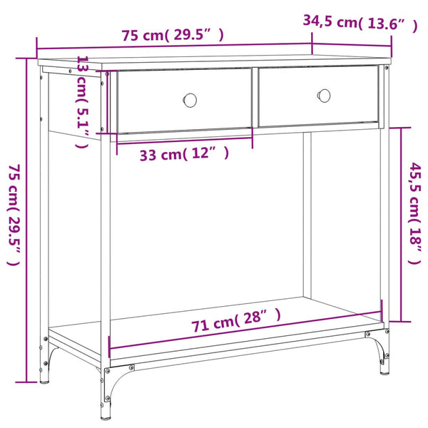 Sonoma-tammi konsolipöytä 75x34,5x75cm puinen