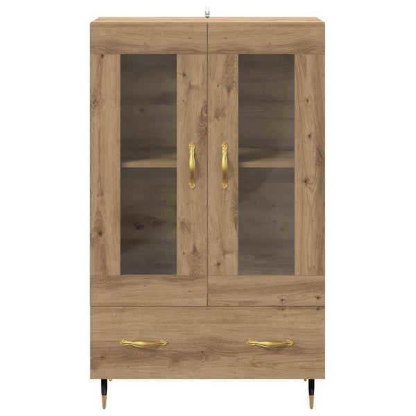 - Tekninen puu Tämä highboard on valmistettu laadukkaasta teknisestä puusta, joka kestää kulutusta. Materiaali valittiin sen pitkäikäisyyden vuoksi, joten huonekalut pysyvät käytössä pitkään. Se säilyttää esteettisen vetovoimansa päivittäisessä käytössä.