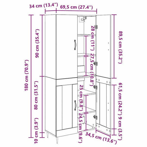 • Täydellinen paketti: Toimitukseen kuuluu kaksi osaa: sivupöytä, jonka mitat ovat 69,5 x 34 x 90 cm, ja korkean kaapin yläosa, joka peilaa näitä mittoja. Nämä yhdessä luovat tehokkaan säilytysratkaisun, joka maksimoi käytännöllisyyden pienessä tilassa.