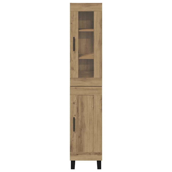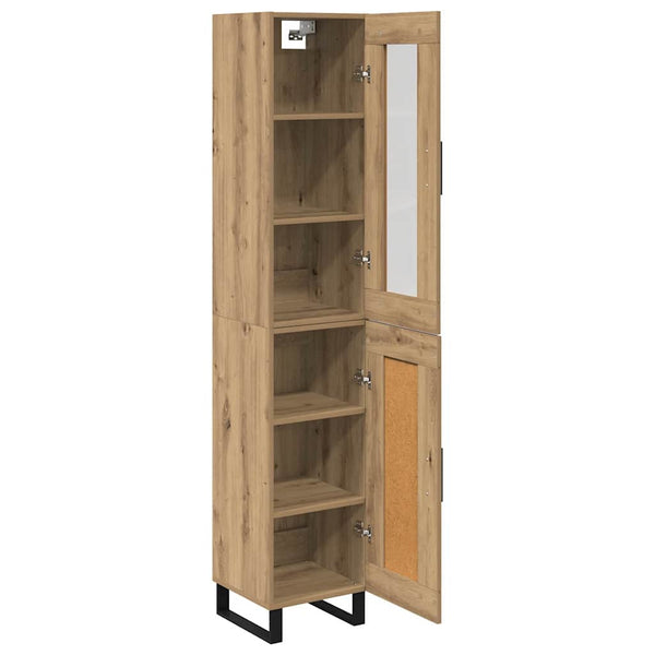 - Musta metallijalka: Korkea kaappi seisoo mustilla metallijaloilla, jotka tarjoavat hyvän tuen. Nämä tyylikkäät jalat tukevat huonekalua ja lisäävät modernia ilmettä tilaan.