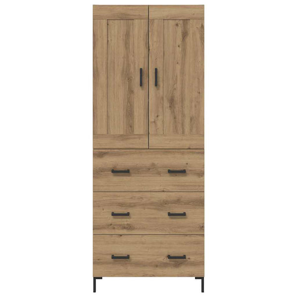 - Lisäkomponentit: Tää korkeakaappi on suunniteltu käytännölliseksi. Se sisältää tukevan rungon, kauniin yläpinnan esillepanoon ja tukevat metallijalat, jotka tukevat käytännön käyttötarkoitusta ja lisäävät luotettavaa säilytystä.