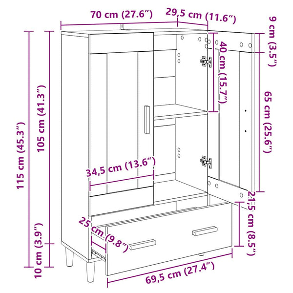 - Yleiset mitat: 70 x 31 x 115 cm (P x L x K)