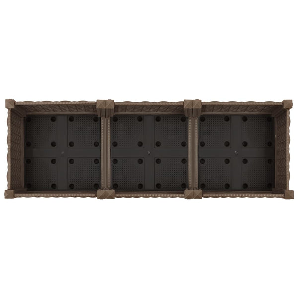 Kukkalaatikko on valmistettu polypropeenista, joka tekee siitä tukevan, kestävän ja sopivan päivittäiseen ulkokäyttöön. Puutarhan kukkalaatikko on riittävän syvä ja leveä suurelle määrälle multaa ja se tarjoaa runsaasti tilaa kasveille, vihanneksille, yrteille ja kukille. Luo ihana tausta kasveistasi tämän elegantin kukkalaatikon avulla!