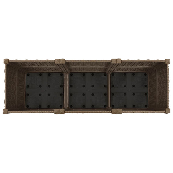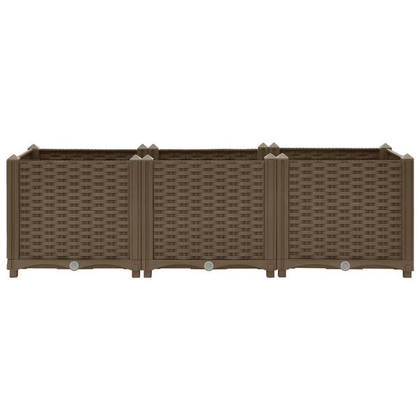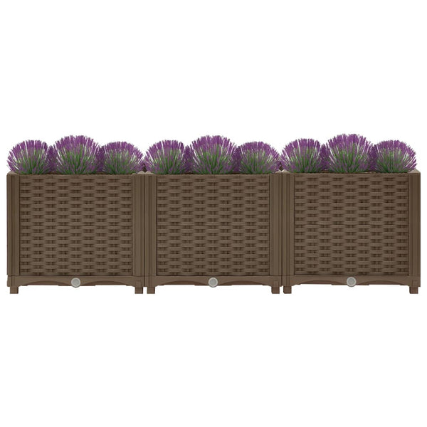 Kukkalaatikko on valmistettu polypropeenista, joka tekee siitä tukevan, kestävän ja sopivan päivittäiseen ulkokäyttöön. Puutarhan kukkalaatikko on riittävän syvä ja leveä suurelle määrälle multaa ja se tarjoaa runsaasti tilaa kasveille, vihanneksille, yrteille ja kukille. Luo ihana tausta kasveistasi tämän elegantin kukkalaatikon avulla!