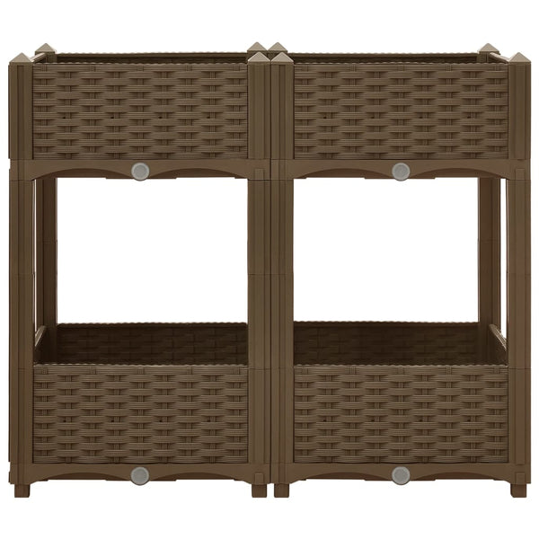 Kukkalaatikko pitää sisällään kaksi hyllyä. Se on valmistettu polypropeenista, joka tekee siitä tukevan, kestävän ja sopivan päivittäiseen ulkokäyttöön. Puutarhan kukkalaatikko on riittävän syvä ja leveä suurelle määrälle multaa ja se tarjoaa runsaasti tilaa kasveille, vihanneksille, yrteille ja kukille. Luo ihana tausta kasveistasi tämän elegantin kukkalaatikon avulla!