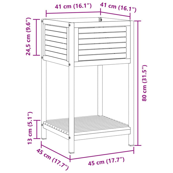 Kukkalaatikko hyllyllä Vlasie 45x45x80cm (akasiapuu ja teräs)