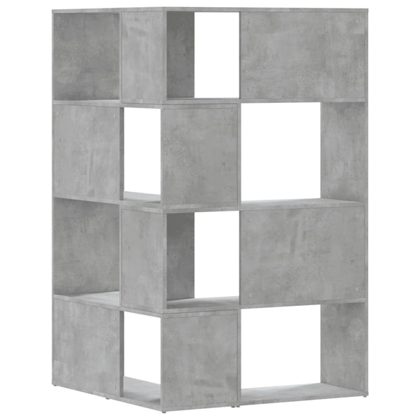 Betoninharmaa kulmakirjahylly 85x85x140cm 4 tasoa, puinen