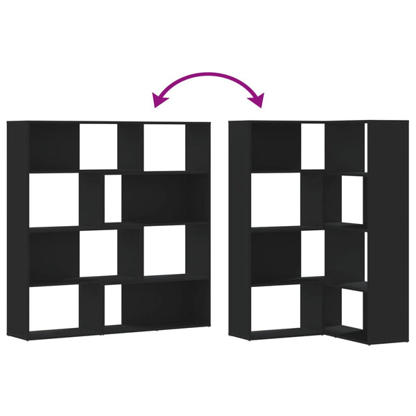 Musta kulmakirjahylly 85x85x140cm 4 tasoa, puinen