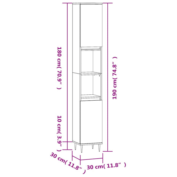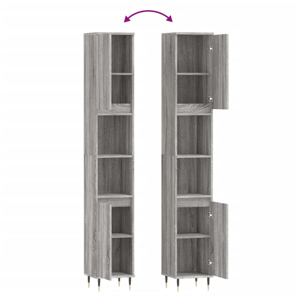 Harmaa sonoma kylpyhuoneen kaappi 30x30x190cm puinen