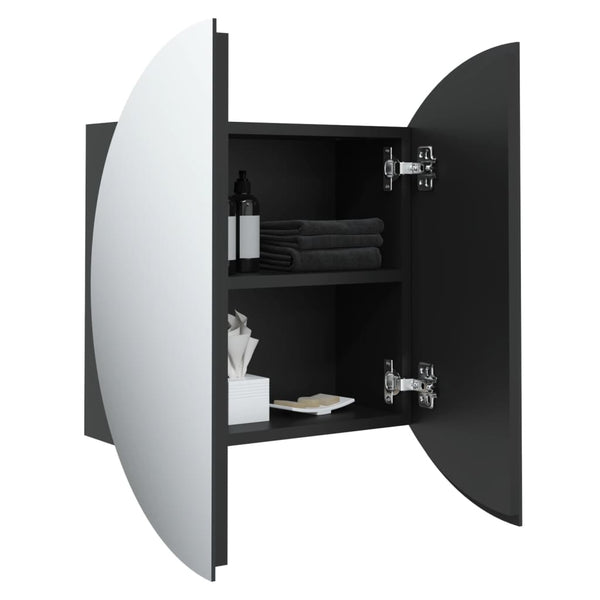 Musta kylpyhuoneen kaappi/pyöreä peili led-valot 47x47x17,5cm