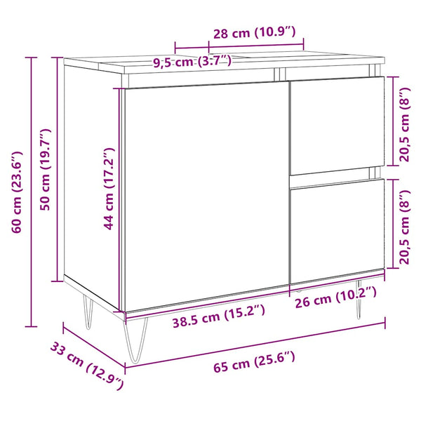 Sonoma-tammi kylpyhuoneen kaappi 65x33x60cm puinen