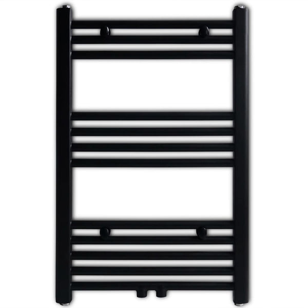 Sen lämminvesikierron ansiosta, sinun pyyhkeesi kuivuvat hetkessä, tämä ei lisää sähkölaskua ja pyyhkeesi kuivuvat hetkessä. Kuivaavassa pyyhetelineessä on 12 poikkiputkea, joiden halkaisija on 22 mm ja ne on maalattu mustaksi. Poikkiputket ovat todella paksuja ja siksi niiden lämmöntuotto on todella korkea. Ylä- ja alareunassa on veden sisääntulo parhaan veden virtauksen takaamiseksi.