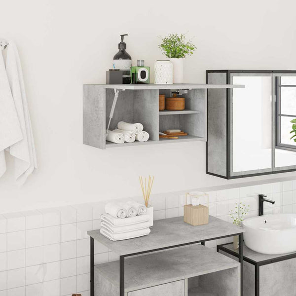 Betoninharmaa kylpyhuoneen seinäkaappi 60x25x30cm puinen
