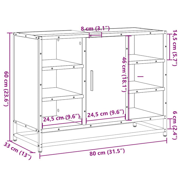 Ruskea kylpyhuonekaappi altaalla 80x33x60cm puinen