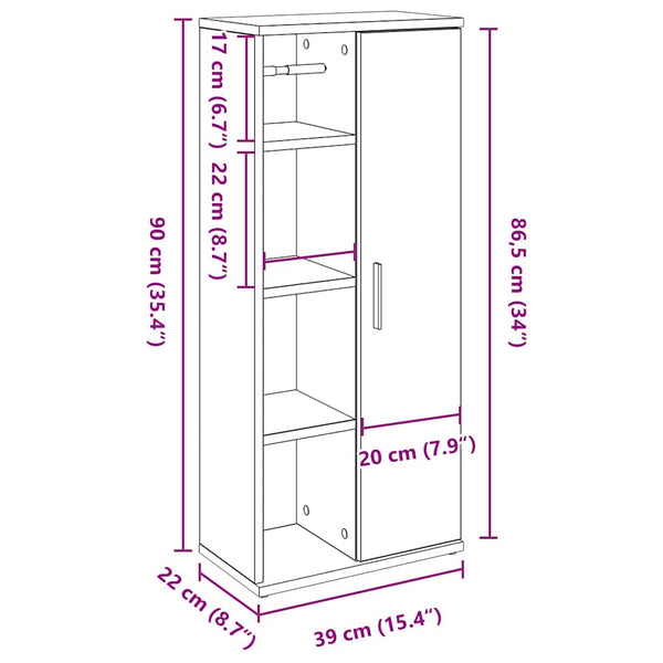 - Rullateline: Kylpyhuoneen säilytyskaappi sisältää sisäänrakennetun paperirullapidikkeen, mikä lisää käyttömukavuutta pitämällä wc-paperin helposti ulottuvilla ja siististi järjestettynä.