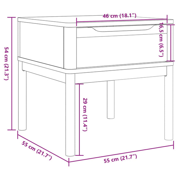 Vahanruskea lamppupöytä floro 55x55x54cm mänty