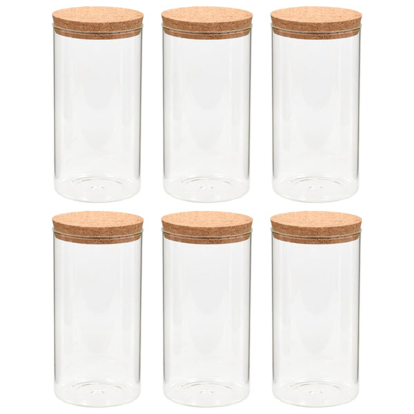 Lasiset säilytyspurkit korkkikannella 1400 ml 6 kpl